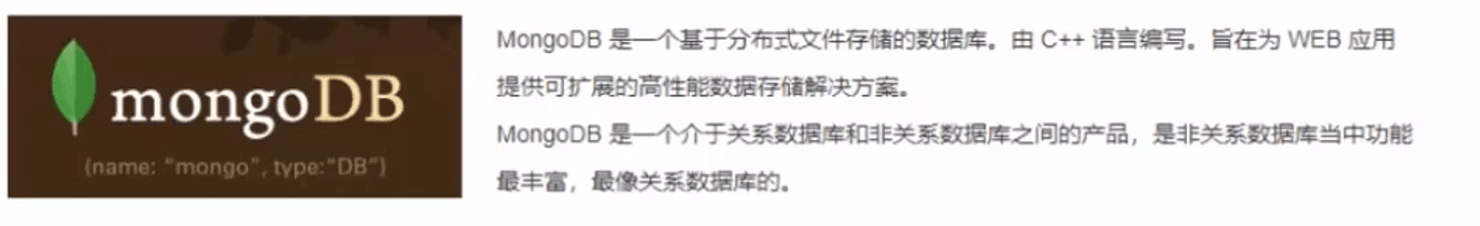 - 支持的数据结构非常松散,是类似json的bson格式(后期插入修改数据写JSON)