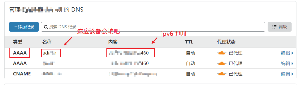 使Cloudfalre代理(为了让ipv4能访问到) https://www.cloudflare.com/ 也可以用 笨牛 具体操作自行搜索